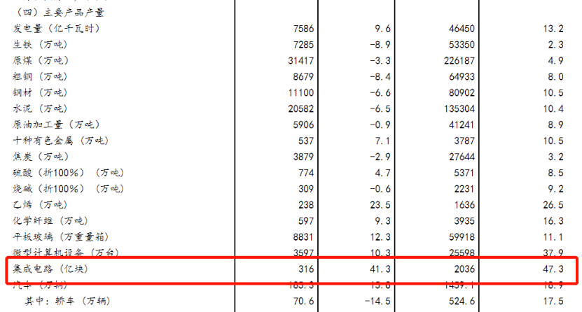 7月,我国集成电路产品产量达316亿块,同比增长41.3%;1-7月,集成电路产品产量2036亿块,同比增长47.3%。